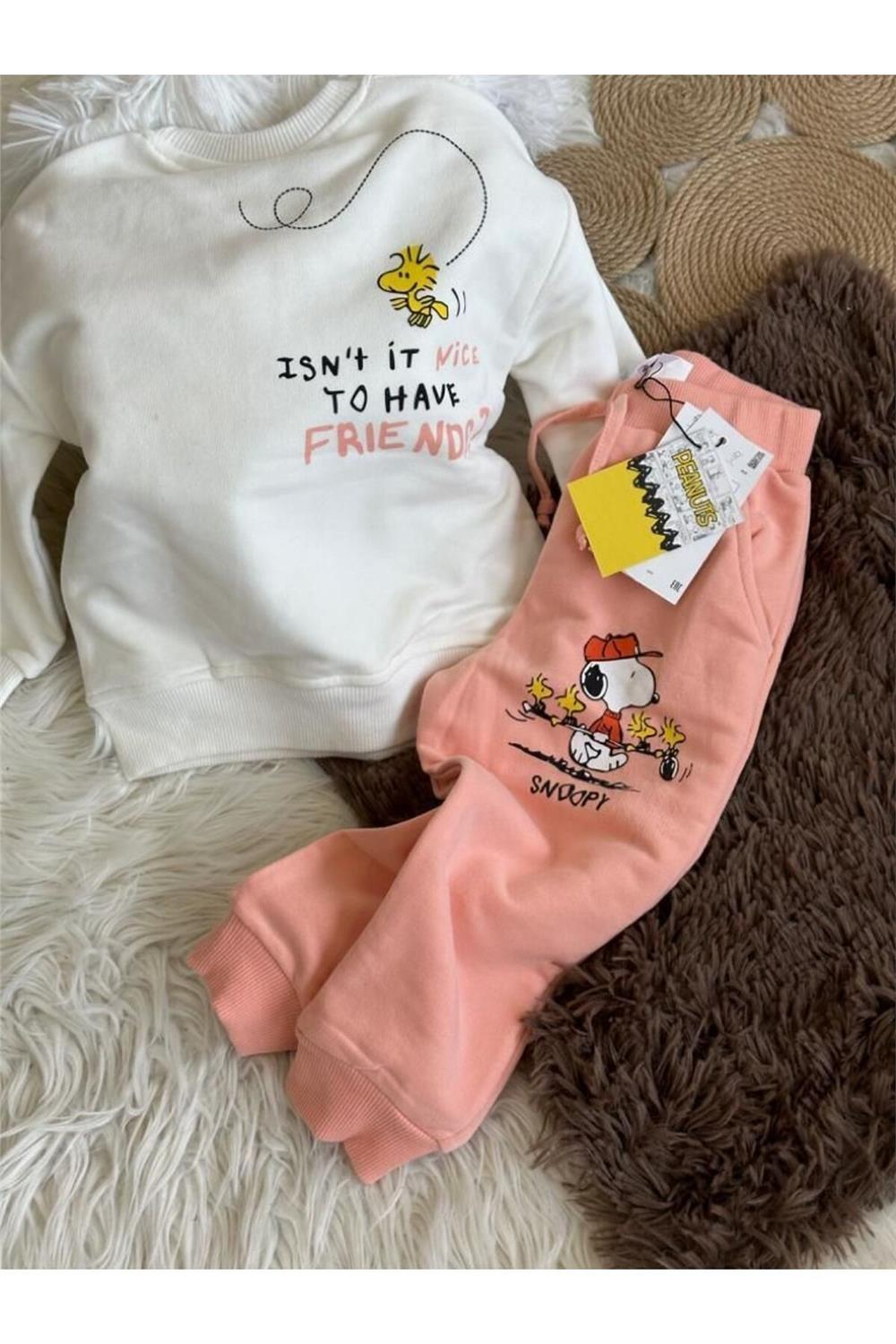 Snoopy’nin ikonik karakter baskısı, bu takıma eğlenceli bir hava katmaktadır. Renkli tasarımı, çocukların enerjisini yansıtırken, aynı zamanda şıklığı da beraberinde getirir.