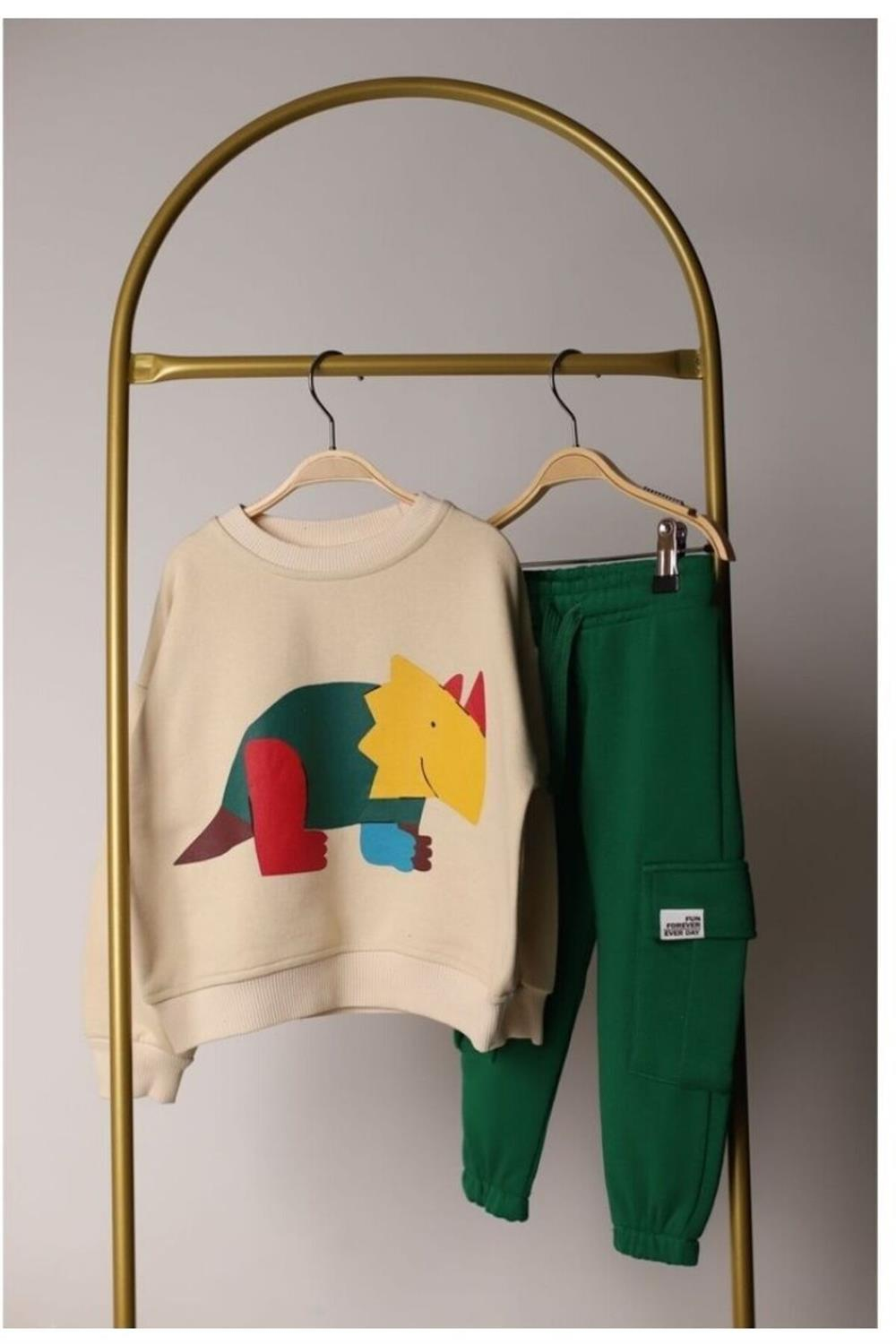 Erkek çocuk baskılı kargo cepli eşofman takımı, stil ve konforu bir araya getirerek, her çocuğun gardırobunda yer alması gereken bir parçadır.