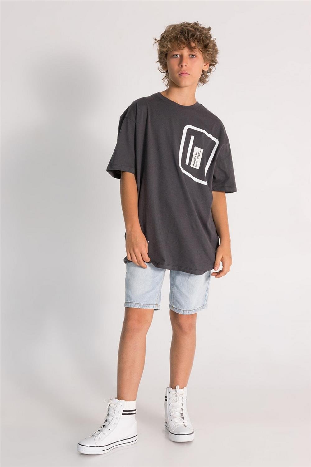 Erkek çocuklar için tasarlanmış bu şık ve modern t-shirt, günlük giyimde rahatlık ve stil arayan ebeveynler için ideal bir seçenektir. Füme rengi, her türlü kombinle uyum sağlarken, baskılı tasarımı ile gençlerin enerjisini yansıtır.