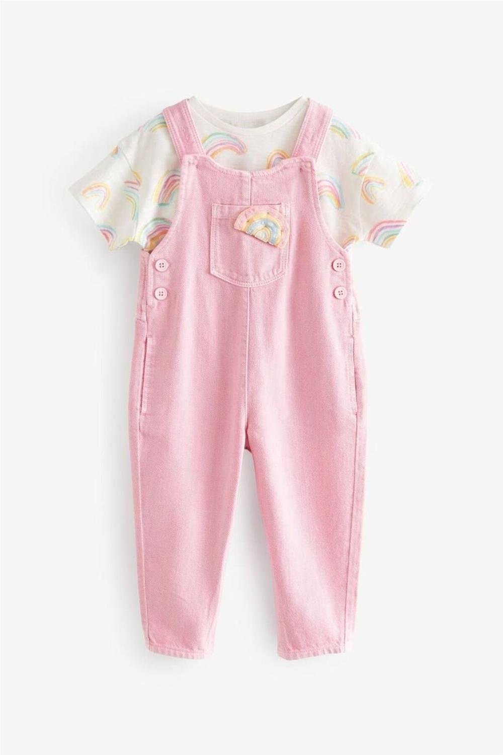 Çocuğunuzun rahatça giyip çıkarabileceği bu salopet, hem günlük kullanım hem de özel etkinlikler için idealdir.; Ekstra cep detayları, hem şıklık hem de fonksiyonellik sağlar.; **Uygun T-Shirt**: Takımın içinde yer alan t-shirt, sade ama şık bir tasarıma sahiptir.; Salopetin renkli desenlerini tamamlayan t-shirt, rahat kesimi ve kaliteli kumaşı ile çocuğunuzun hareket özgürlüğünü destekler.; Yumuşak ve hafif kumaşı, hassas ciltler için uygundur.; **Kolay Bakım**: Hem salopet hem de t-shirt, makinede kolayca yıkanabilir.; Renkler ve kumaş, yıkama sonrası solmadan ve formunu kaybetmeden uzun süre dayanıklıdır.; **Özel Günler ve Günlük Kullanım İçin İdeal**: Bu takım, hem günlük aktiviteler hem de özel günler için harika bir seçenektir.; Çocuğunuzun enerjik ve neşeli kişiliğini yansıtan bu kıyafet, her ortamda fark yaratır.; **Mükemmel Hediye Seçeneği**: Çocuklar için hediye arayışında olanlar için gökkuşağı salopet & t-shirt takımı, neşeli ve kullanışlı bir hediye seçeneği sunar.; Renkli tasarımı ile çocukların gözdesi olacak bu takım, onların yüzünü güldürecek.;