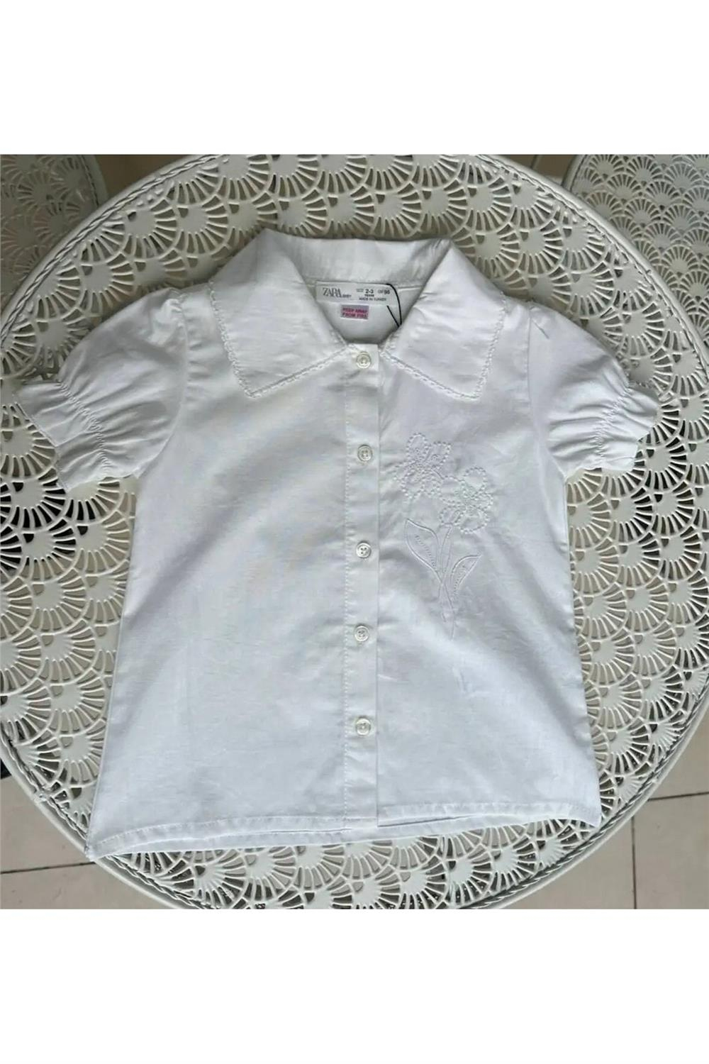 Kız Çocuk Kısa Kol İşlemeli Gömlek