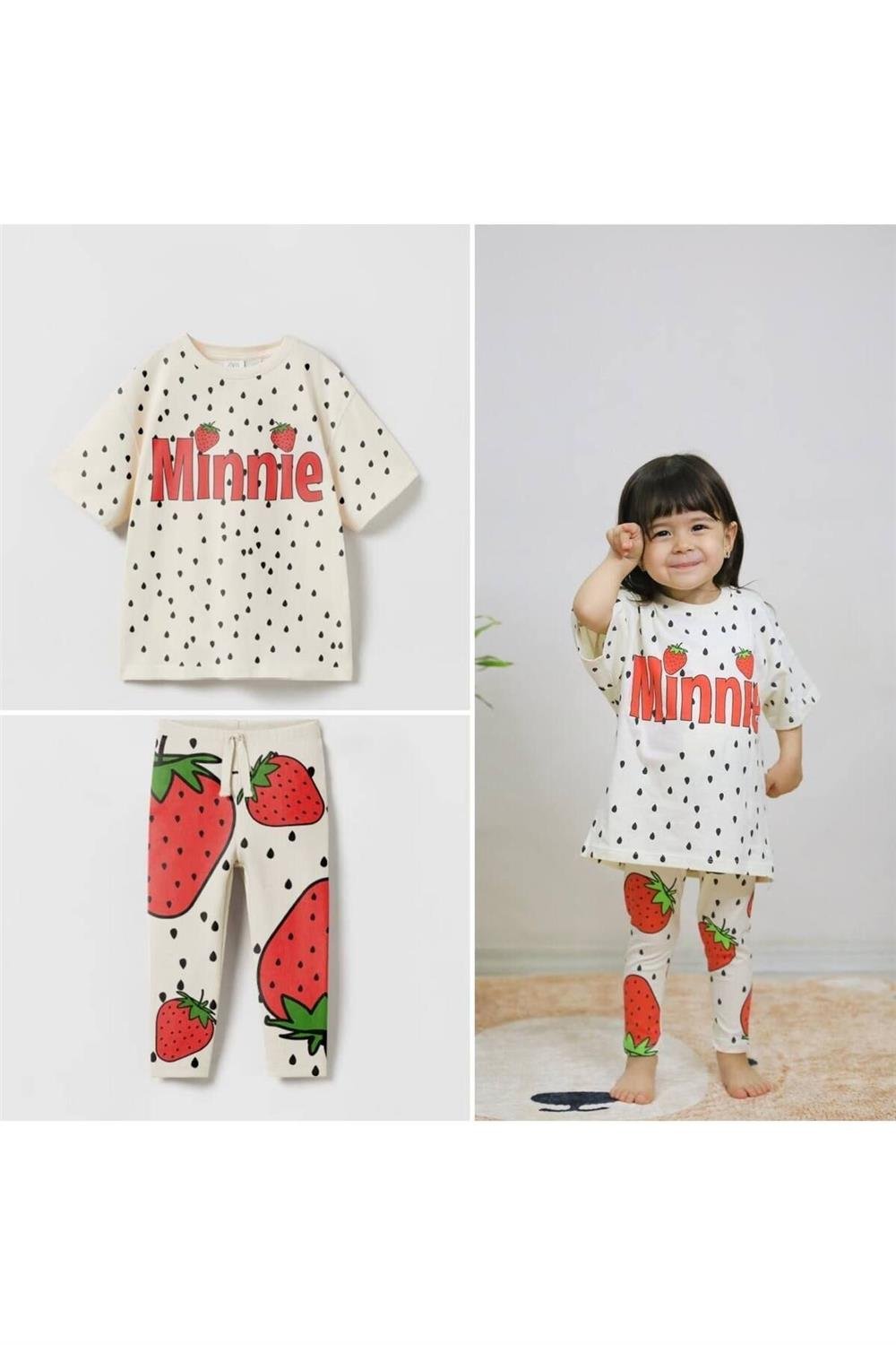 Takım, renkli ve canlı tasarımıyla dikkat çekerken, yumuşak kumaş yapısı sayesinde gün boyu rahat bir kullanım sunar. Tişört üzerindeki çilek detayları, çocukların hayal gücünü beslerken, yazılı grafikler de eğlenceli bir görünüm kazandırır. Tayt ise esnek yapısıyla hareket özgürlüğü sağlar, böylece çocuklar oyun oynarken veya aktivitelerde bulunurken rahatlıkla hareket edebilirler.