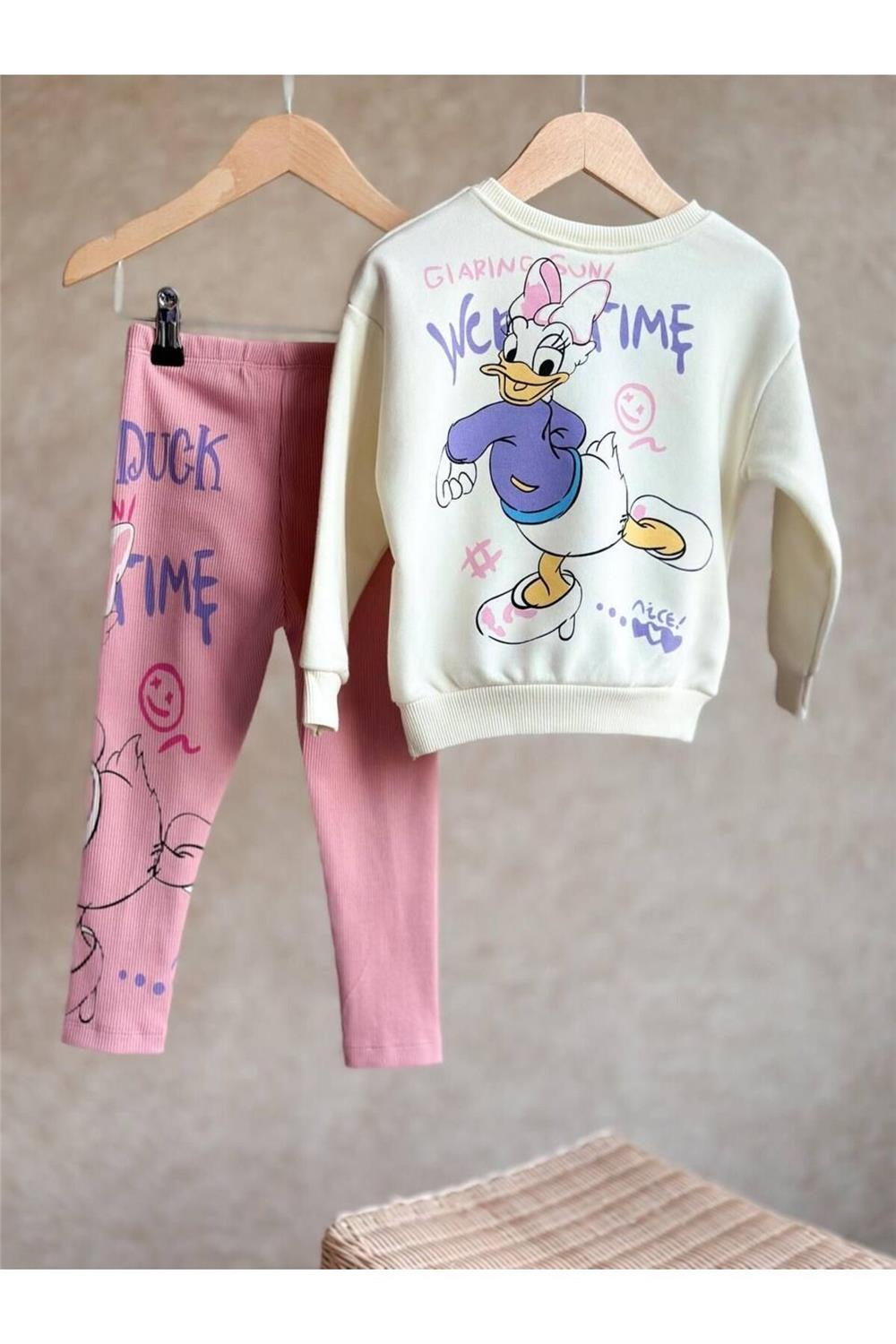 Kız çocukları için tasarlanmış olan bu şık ve konforlu taytlı takım, günlük giyimde zarafeti ve rahatlığı bir araya getiriyor. Daisy baskı detayları, takımın estetik görünümünü artırırken, fitilli tayt yapısı da hareket özgürlüğü sağlıyor.