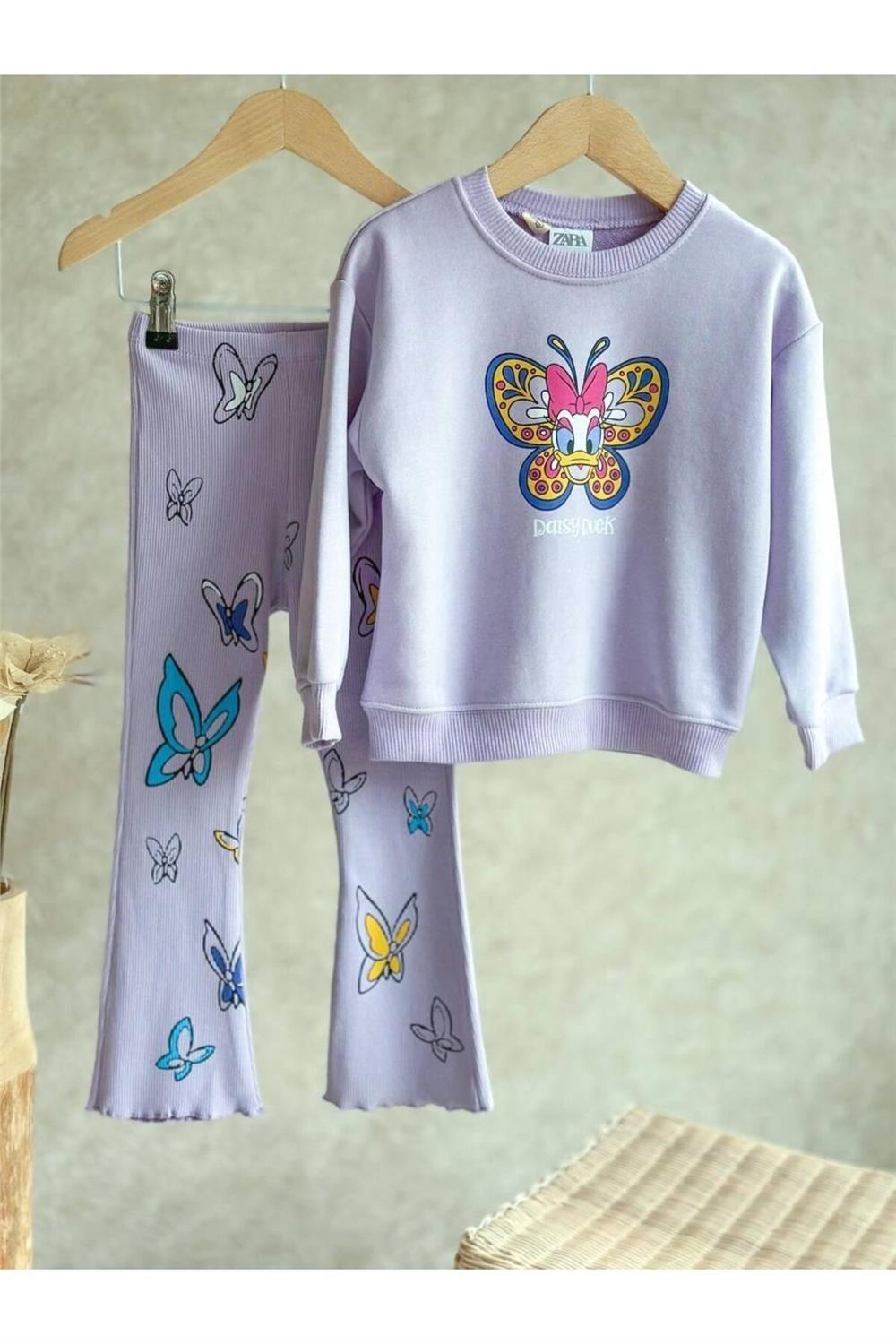 Kız Çocuk Daisy Baskı Detaylı Fitilli Taytlı Takım (E177)