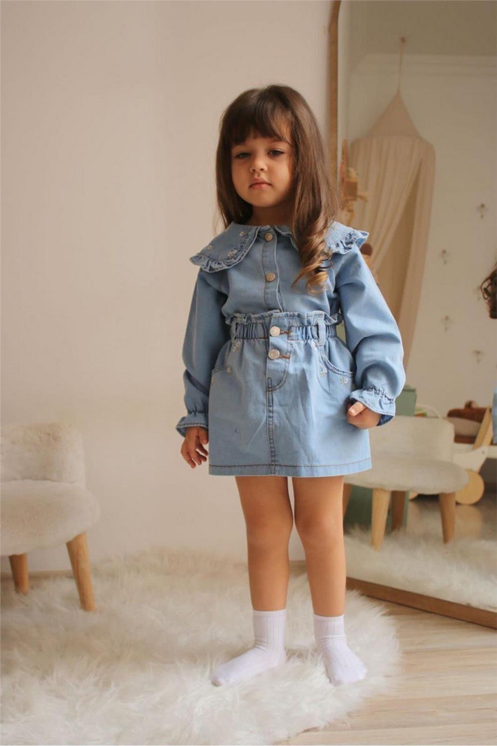Şık ve detaylı bir tasarıma sahip olan Demin Nakış Detaylı Etekli Takım, küçük prensesler için zarafeti ve konforu bir araya getiriyor. SONGÜLBERİK markasının özenle hazırladığı bu takım, 4-5 yaş aralığındaki çocuklar için ideal bir seçenek sunmaktadır.