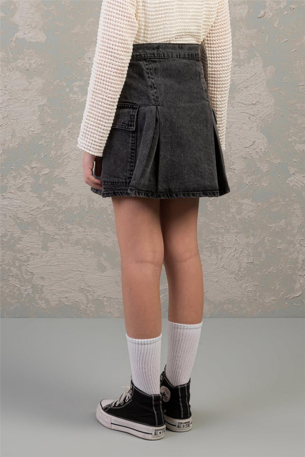Kız çocukları için tasarlanmış olan denim şort etek, modern ve şık bir görünüm sunmaktadır. Füme rengi, her türlü üst giysi ile kolayca kombinlenebilirken, denim kumaşın dayanıklılığı sayesinde uzun süreli kullanım imkanı sağlar.