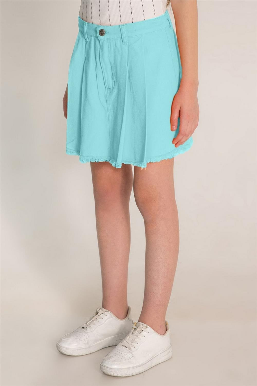 Denim kumaş yapısı, dayanıklılığı ve uzun ömürlülüğü ile dikkat çekerken, hafif yapısı sayesinde yaz aylarında serin tutma özelliğine sahiptir. Şort etek, farklı beden seçenekleri ile 9-10 yaşından 13-14 yaşına kadar geniş bir yaş aralığına hitap etmektedir. Bu sayede, her yaştaki kız çocuğunun stiline uyum sağlar.