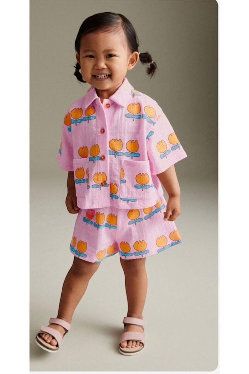 Kız çocukları için ideal bir yaz kıyafeti arayan ebeveynler için mükemmel bir seçenek olan bu şortlu takım, modayı ve konforu bir araya getirerek çocukların günlük yaşamına renk katmaktadır.