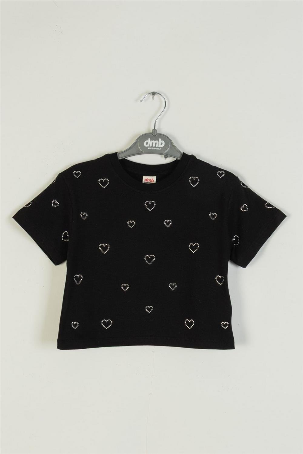 Tişört, yumuşak ve hafif kumaş yapısı sayesinde gün boyu konfor sunar. Farklı beden seçenekleri (4-5 yaş, 5-6 yaş, 6-7 yaş, 7-8 yaş, 8-9 yaş) ile her yaştaki kız çocuğuna hitap eder. Kalp detayları, genç kızların stiline zarif bir dokunuş katarken, taş süslemeleri ise tişörte ışıltı ve şıklık kazandırır.