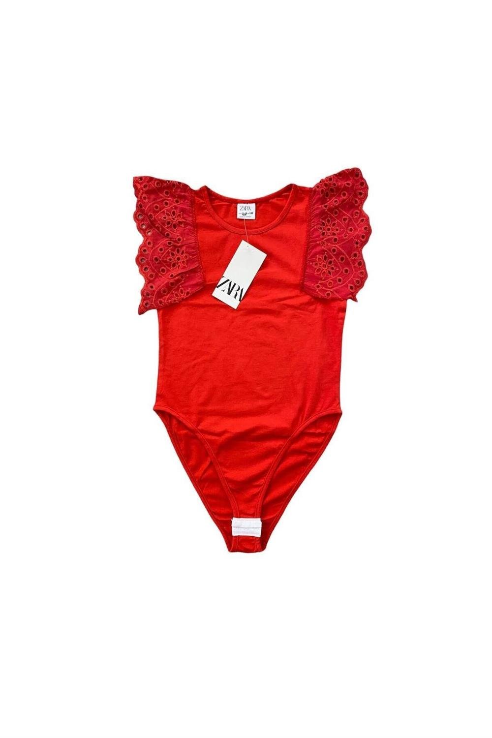 Kırmızı Dantel Kol Detayı: Body’nin dantel kol detayları, modern bir dokunuş ve zarafet katarak etkileyici bir görünüm sağlar. Hafif şeffaflık, stilinize sofistike bir hava ekler.
