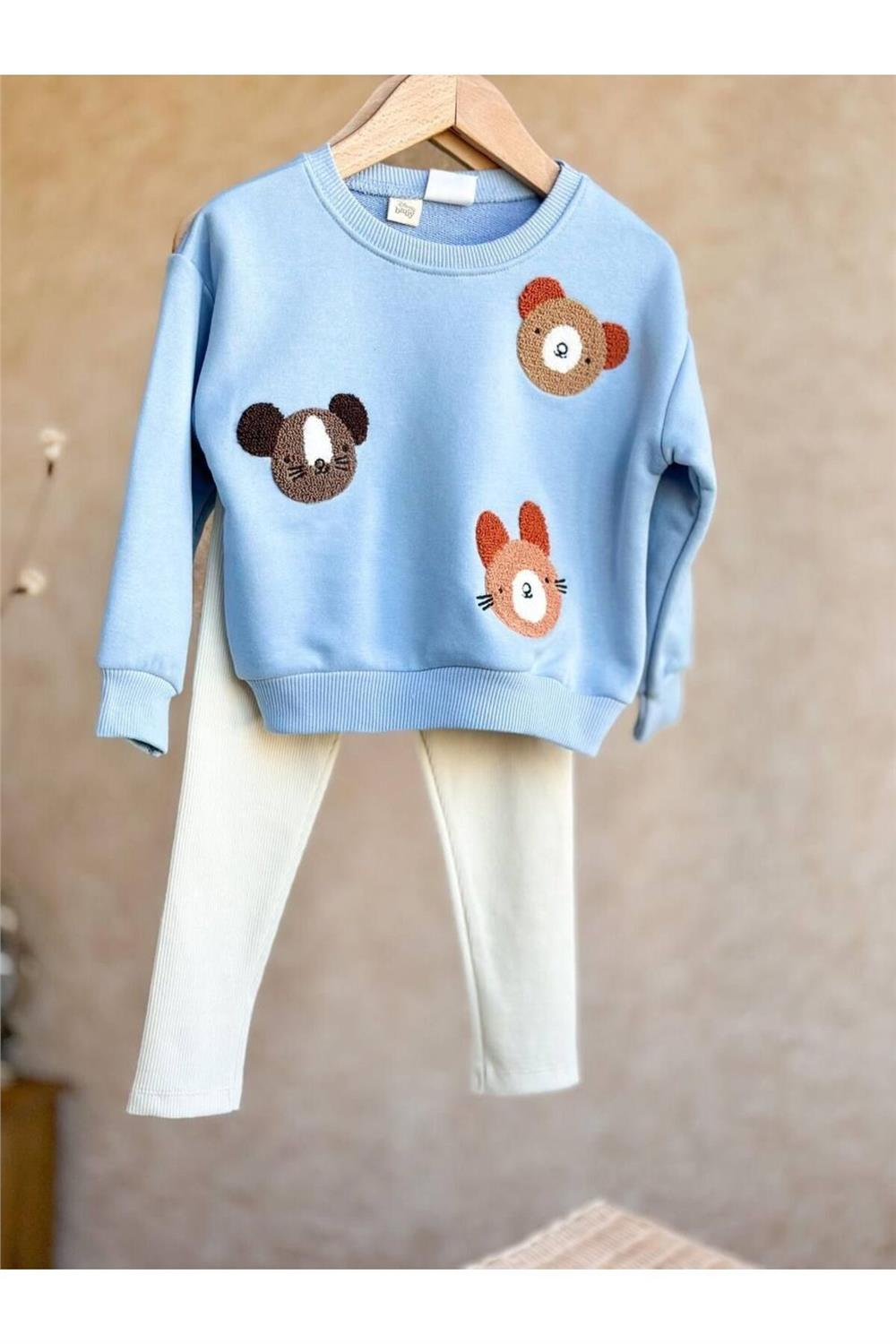 Bu takım, hem sevimli detayları hem de rahat kesimi ile çocukların stilini ve konforunu artırarak, günlük giyimde vazgeçilmez bir parça haline gelmektedir. Mavi renk seçeneği ile 2-3 yaş, 3-4 yaş ve 4-5 yaş bedenlerinde sunulmaktadır. SÜZENE NAKIŞLI AYICIK SWEATSHİRT ve FİTİLLİ TAYT, çocuklarınız için hem şık hem de konforlu bir giyim alternatifi sunar.