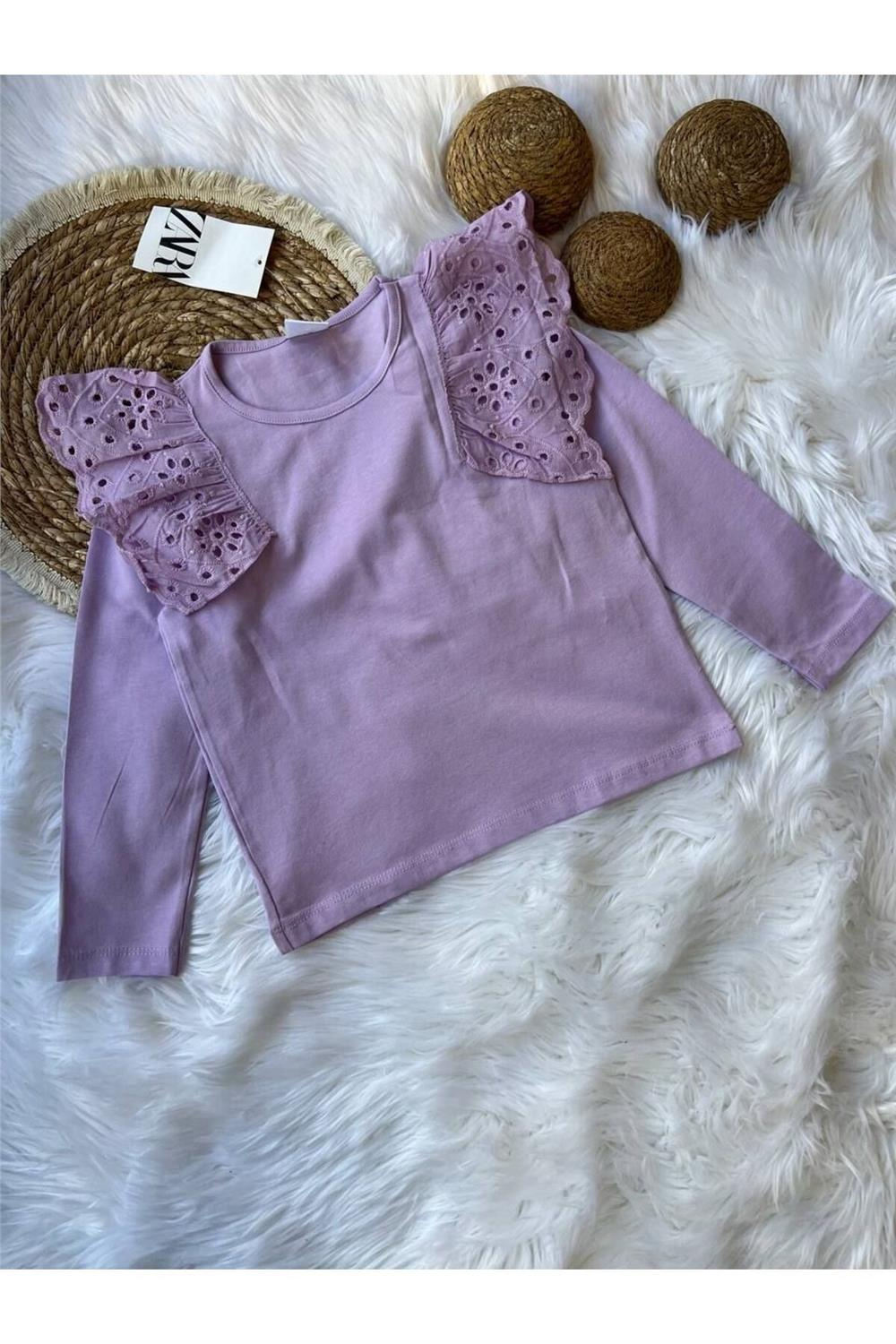 Kız çocukları için tasarlanmış lila dantel kol bluz, yüksek kaliteli pamuklu kumaşı ile dikkat çekmektedir. Yumuşak ve nefes alabilir yapısı, gün boyu konfor sunarak aktif yaşam tarzına uyum sağlar. Bluzun zarif dantel kol detayları, modern ve feminen bir görünüm kazandırarak, özel günlerde ve günlük kullanımda şıklığı ön plana çıkarır.