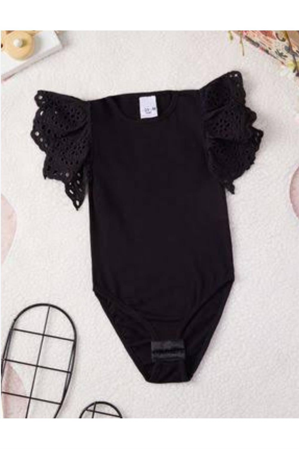 Kız çocukları için tasarlanmış olan siyah dantel kol zıbın body, zarif detayları ve modern tasarımıyla dikkat çekmektedir. Bu özel giyim parçası, hem günlük kullanımda hem de özel etkinliklerde şıklığı ön plana çıkaran bir seçenek sunar.