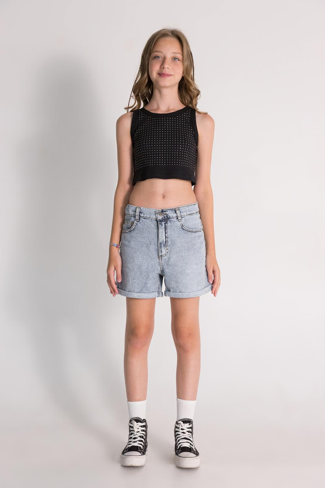 Kız çocukları için tasarlanmış olan bu şık siyah crop, zarif taş detaylarıyla dikkat çekmektedir. Kız Çocuk Siyah Taşlı Crop, hem günlük kullanım hem de özel günler için ideal bir seçenek sunar. Yumuşak ve esnek pamuk karışımından üretilmiş olan bu ürün, rahat bir kesim ile modern bir görünüm sağlar.