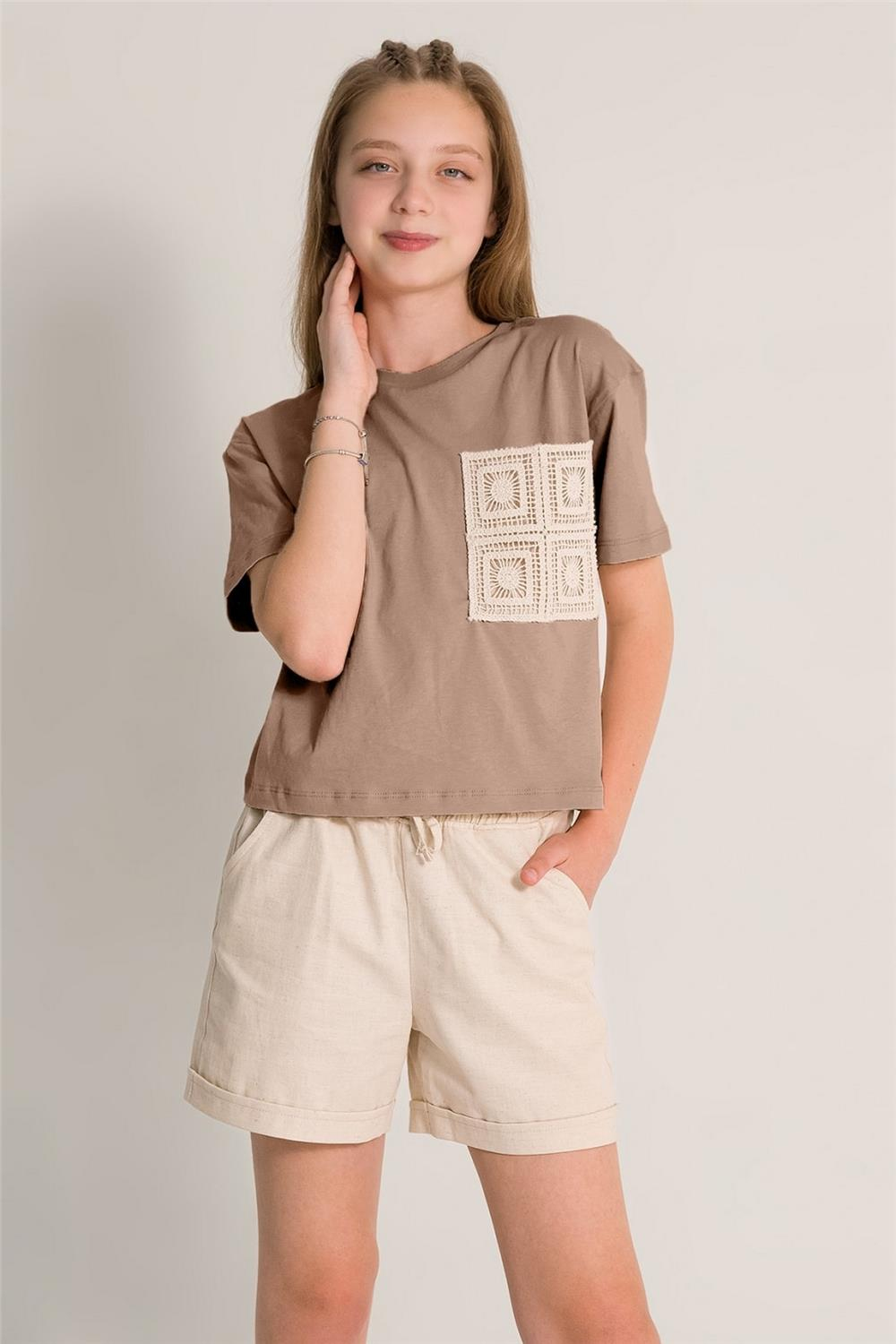Kız çocukları için tasarlanmış cep detaylı t-shirt, hem şıklığı hem de fonksiyonelliği bir arada sunmaktadır. SONGÜLBERİK markasının bu ürünü, genç bireylerin günlük yaşamlarında rahatlıkla kullanabilecekleri bir seçenek olarak öne çıkmaktadır.