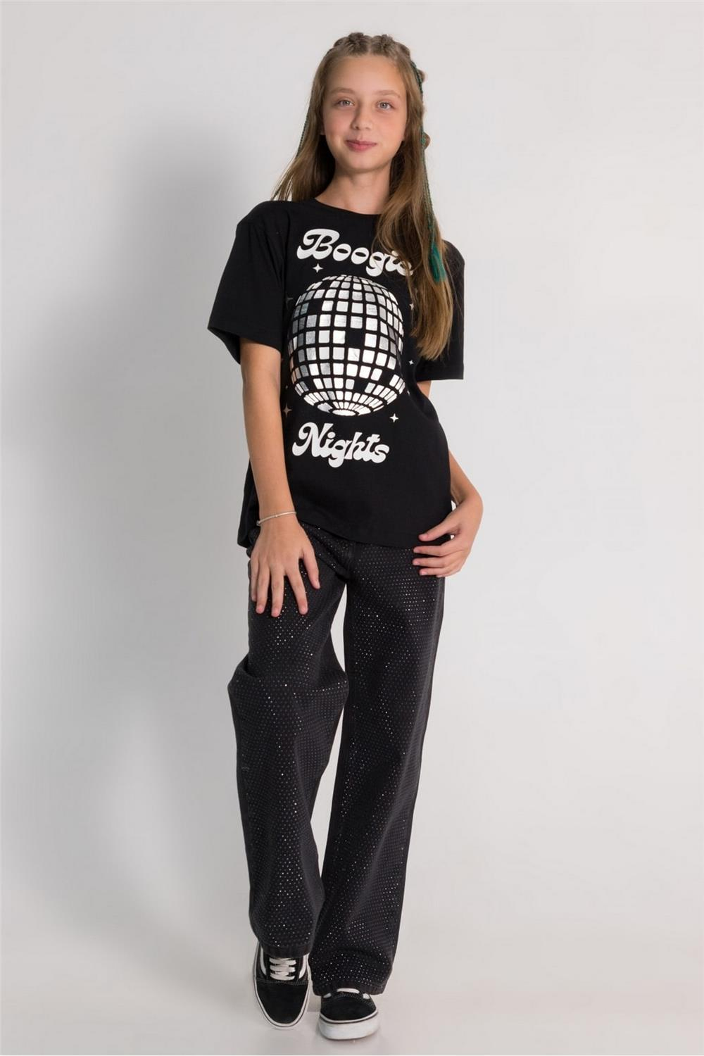 T-shirt, enerjik ve dikkat çekici tasarımıyla, çocukların kişisel tarzlarını yansıtmalarına olanak tanır. Eğlenceli baskı detayları, günlük kombinlere hareket katarken, şort, etek ve pantolon gibi farklı parçalarla kolayca uyum sağlar. Yüksek kaliteli kumaşı, hem dayanıklılığı hem de konforu ile öne çıkmaktadır.