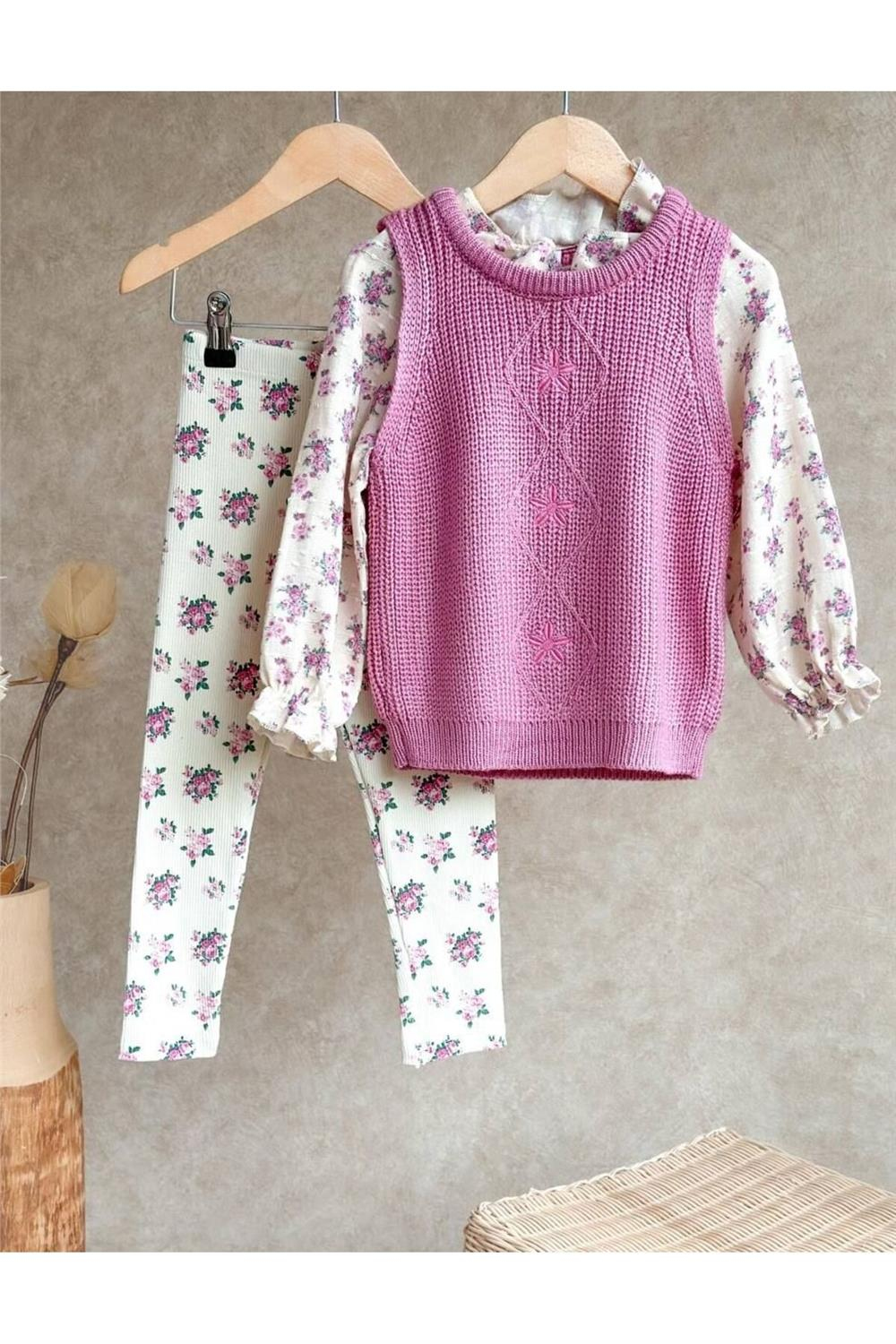 Kız çocukları için tasarlanmış bu triko kazak ve fitilli tayt kombinasyonu, modern ve zarif bir görünüm sunarak her türlü etkinlikte şıklığı ön plana çıkarır. Triko kazak, gömlek detaylı birleşik tasarımıyla dikkat çekerken, yumuşak dokusu sayesinde çocuğunuzun cildine dost bir deneyim sağlar.