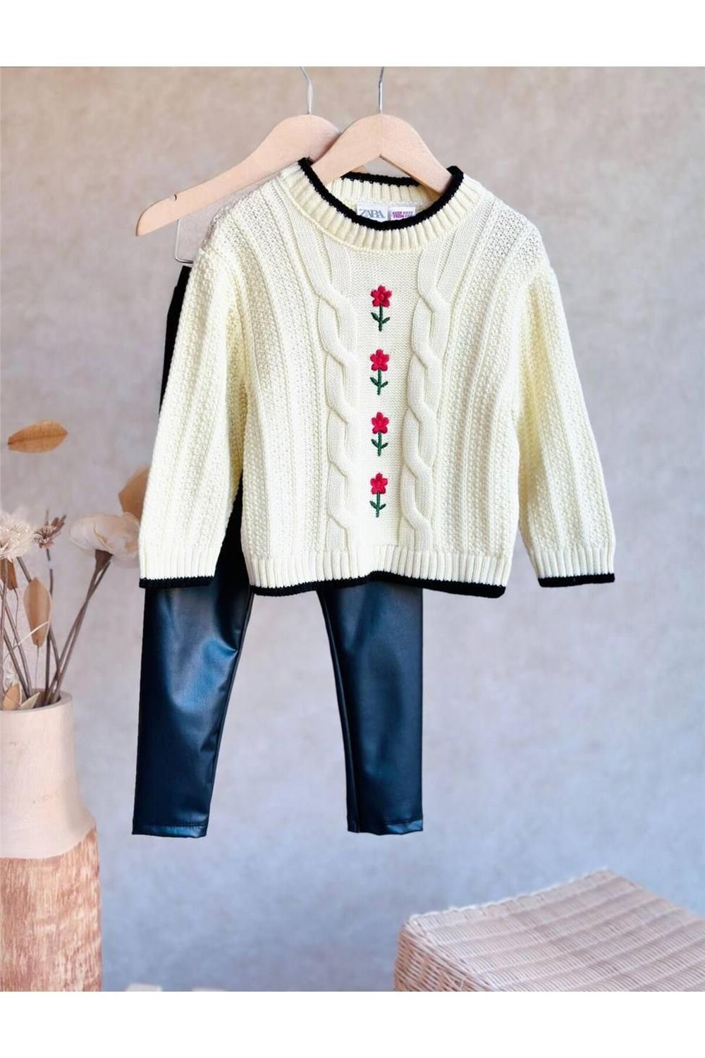Kız çocukları için tasarlanmış olan triko nakışlı kazak ve deri tayt takımı, hem estetik hem de fonksiyonel özellikleriyle dikkat çekmektedir. Yüksek kaliteli kumaş kullanılarak üretilen triko kazak, yumuşak dokusu sayesinde çocuğunuzun konforunu ön planda tutar. Zarif nakış detayları, kazağa şıklık katarken, modern kesime sahip deri tayt, siyah rengiyle her ortamda göz alıcı bir görünüm sunar.