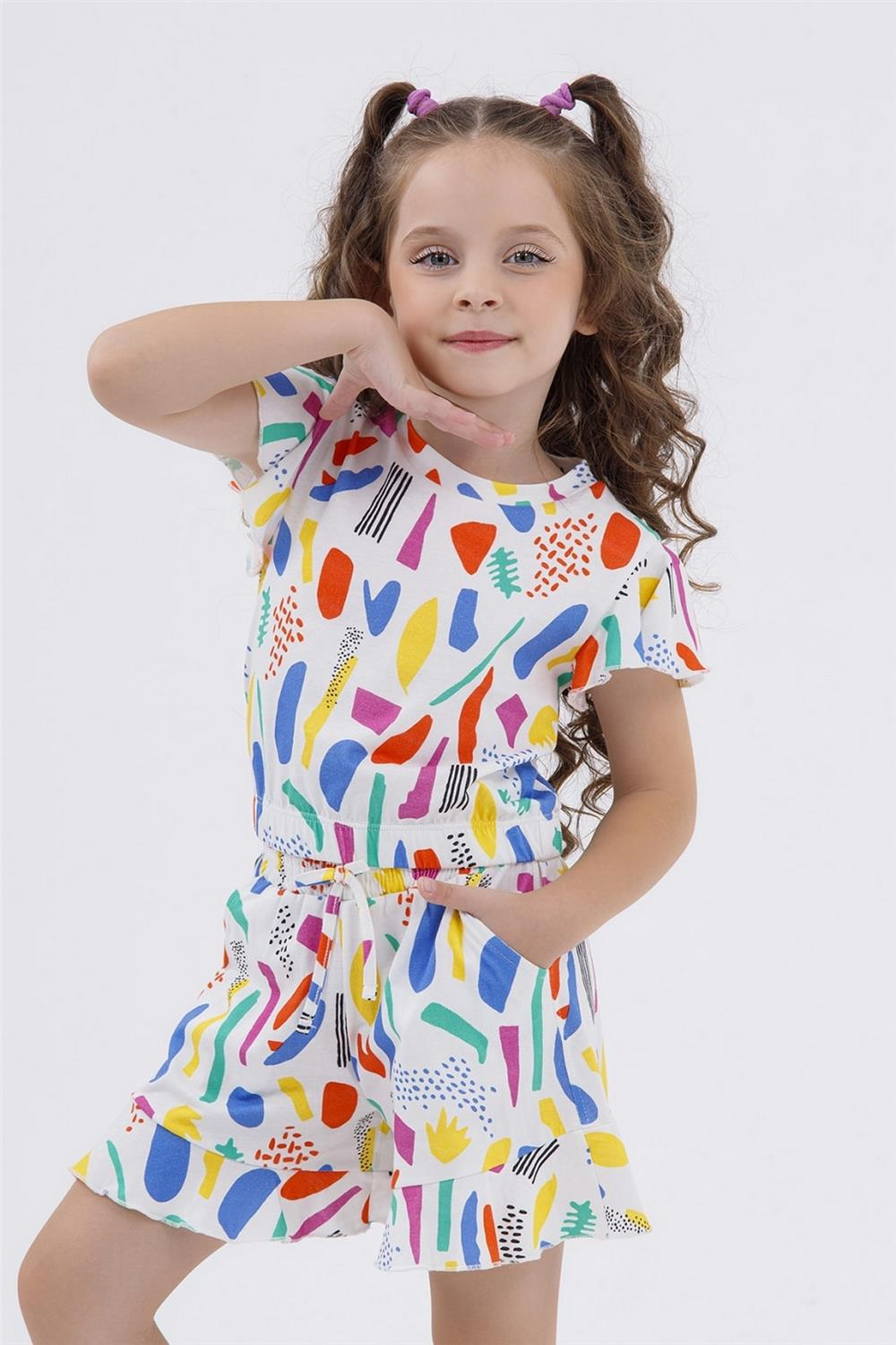 Renkli desenleriyle öne çıkan bu yazlık kız çocuk takımı, şıklığı ve konforu bir arada sunarak genç modaseverlerin beğenisini kazanıyor. 4-5 yaş arası çocuklar için tasarlanan bu takım, hareket özgürlüğünü kısıtlamadan rahat bir kullanım imkanı sağlar.