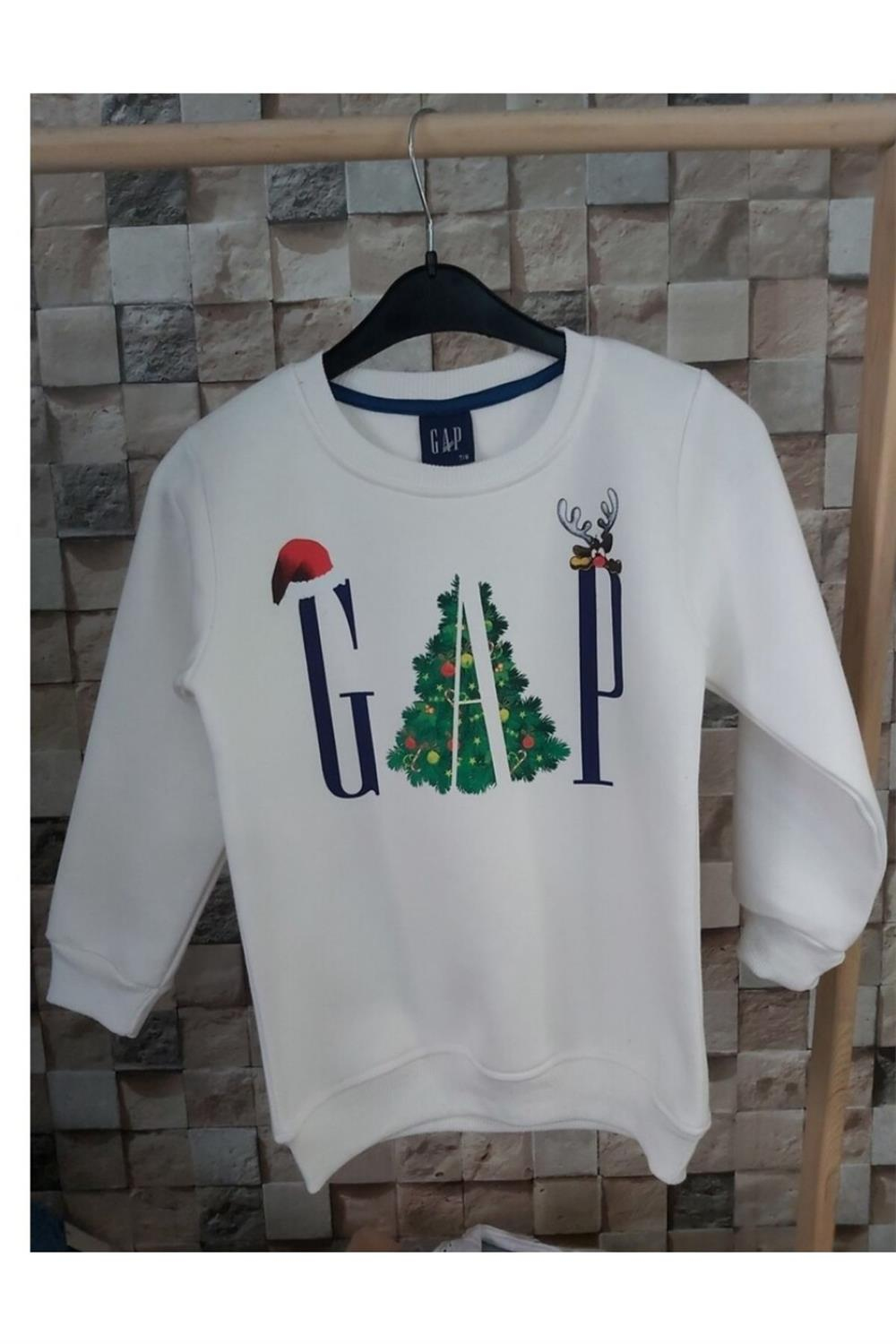 Sweatshirt, beyaz ve kırmızı renk seçenekleriyle sunulmakta olup, yeni yıl ruhunu yansıtan eğlenceli desenlerle zenginleştirilmiştir. Bu tasarım, çocukların neşesini ve enerjisini ön plana çıkarırken, aynı zamanda yılbaşı kutlamalarına da uyum sağlamaktadır.